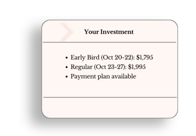 If you miss this October cohort, the next one won't be until 2026. This is the only time we're offering the program this year.